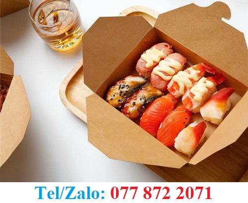 - Chất liệu giấy nhẹ nhưng chắc, thường dùng giấy kraft giúp giữ form khi đựng cơm nóng
