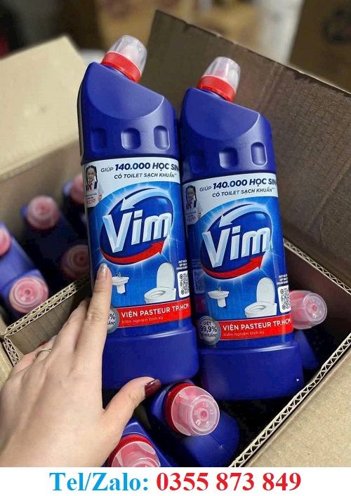 Nước tẩy Vim là dung dịch tẩy rửa đậm đặc chuyên dùng cho bồn cầu, nhà vệ sinh, sàn và các bề mặt ẩm ướt dễ sinh vi khuẩn. Vim nổi bật với độ an toàn và hiệu quả cao, nên rất được ưa chuộng trong gia đình, nhà hàng, khách sạn.